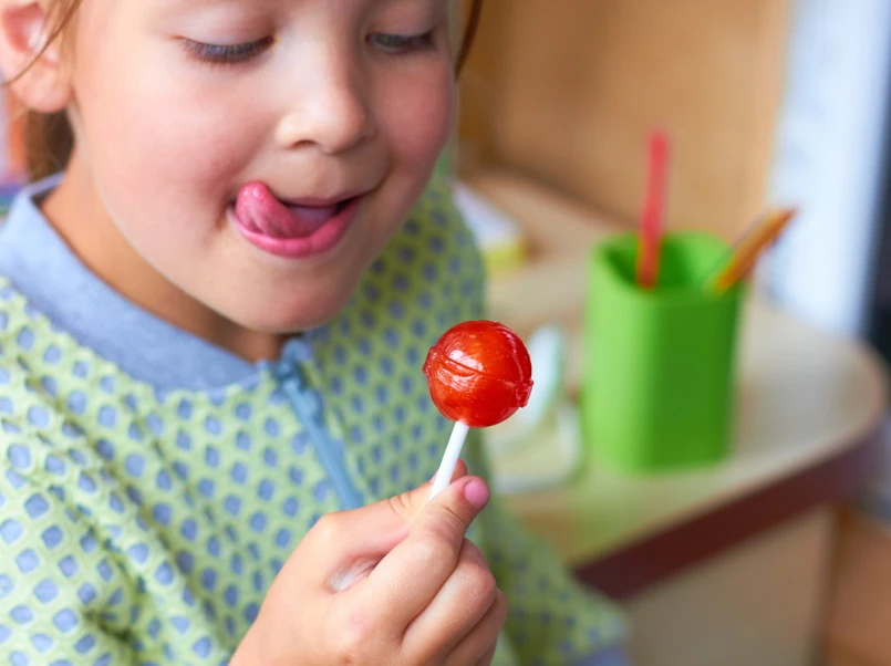 Nie wszyscy rodzice zapewne wiedzą, że zjedzenie lizaka – czy to klasycznego, czy też rozpylanego, powoduje obniżenie pH jamy ustnej. Gdy pH spada – związki mineralne „uciekają” z zębów do śliny. Gdy pH rośnie – sytuacja jest odwrotna: związki „wracają” do zębów.