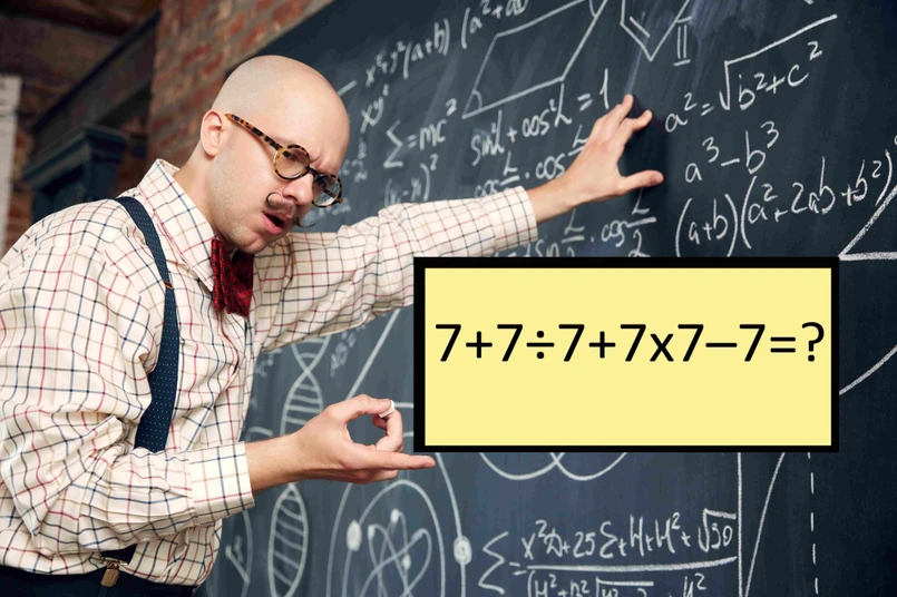 Jak rozwiążesz równanie "7 + 7 ÷ 7 + 7 x 7 – 7"?